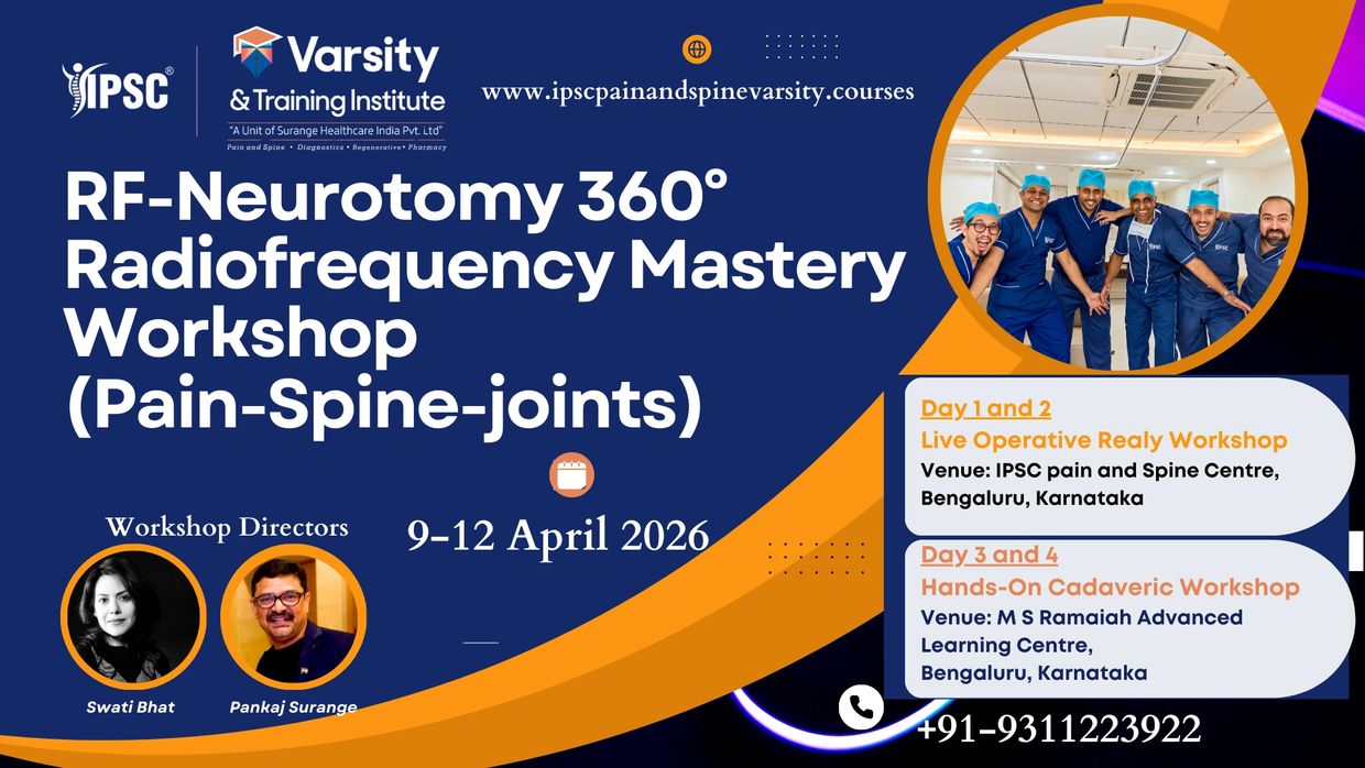 9th-10th April,2026, at IPSC India: Pain & Spine Centre, Bengaluru, Karnataka & 11th-12th April,2026, at M.S. Ramaiah Advance learning center (Bengaluru)