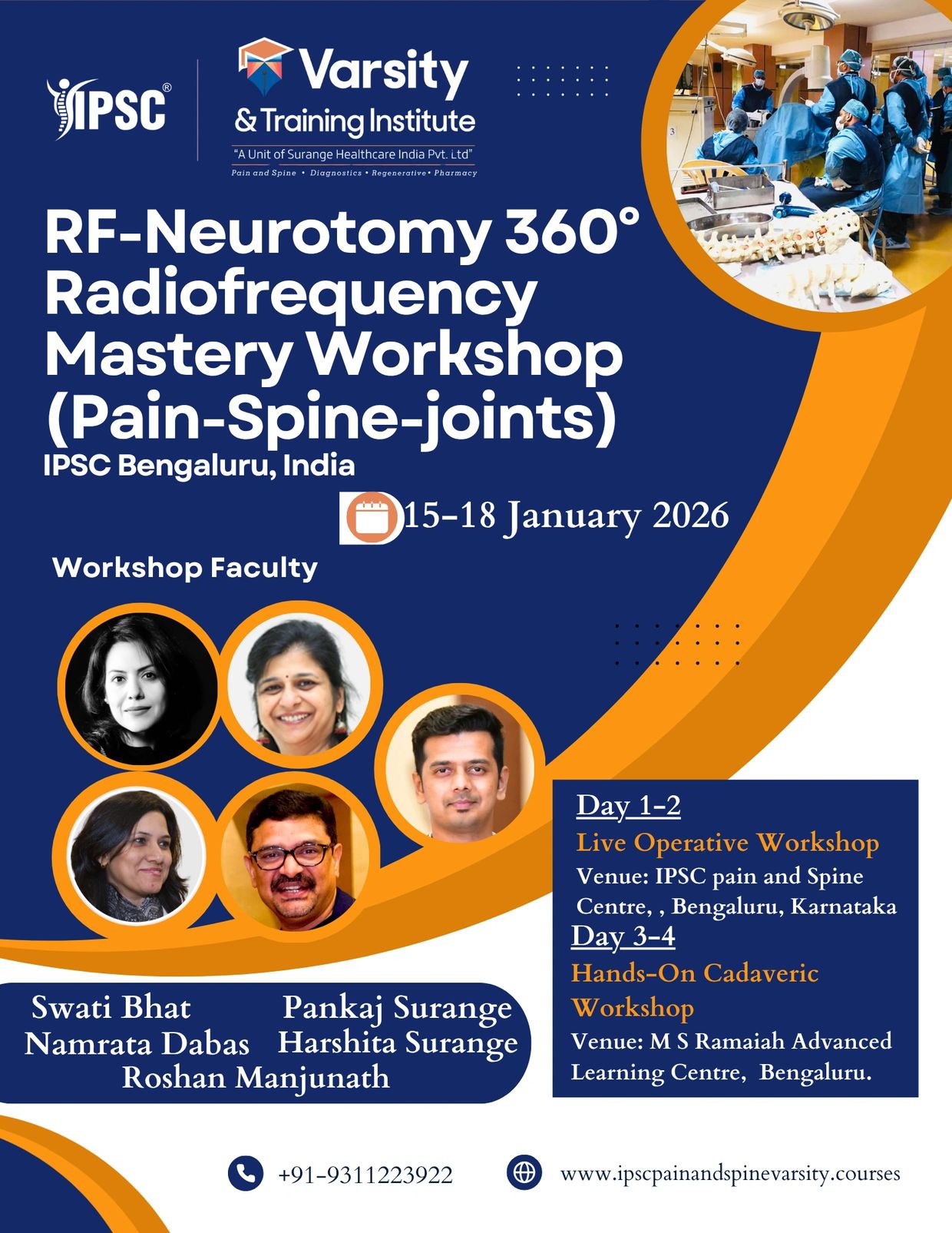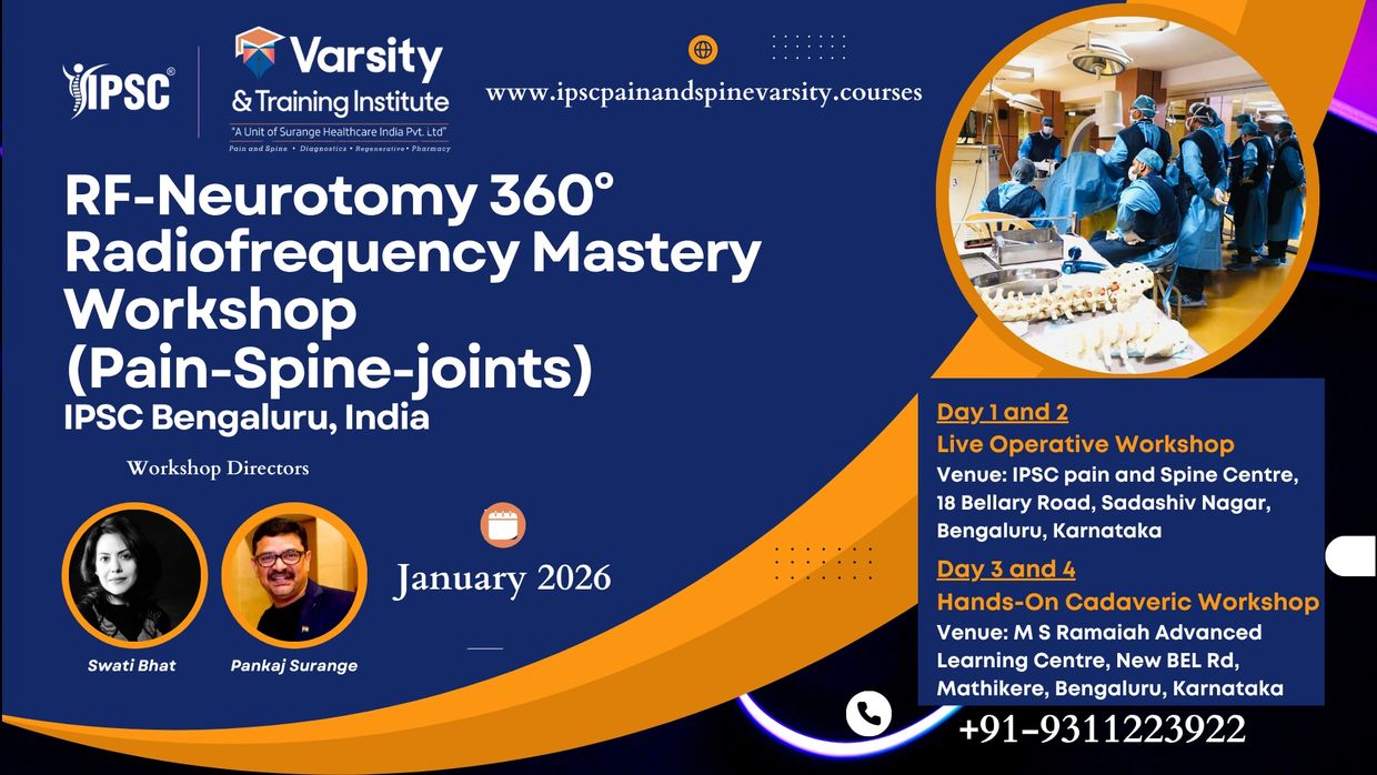 11th-12th October,2025, at IPSC India: Pain & Spine Center, Bengaluru, Karnataka & 15th-18th January,2025, at M.S. Ramaiah Advance learning center (Bengaluru)